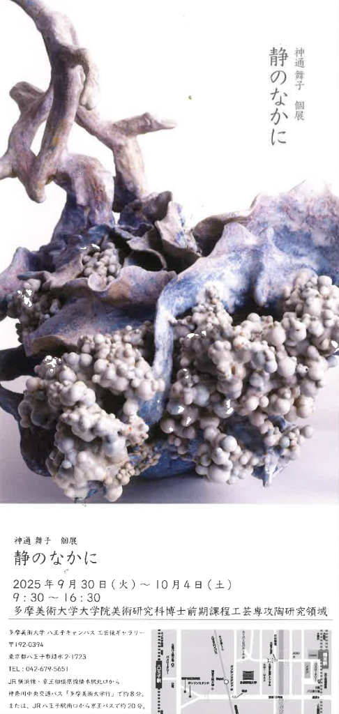 大学院 美術研究科博士前期過程 工芸専攻陶研究領域 2年 神通 舞子さんが個展 「静のなかに」を開催します。